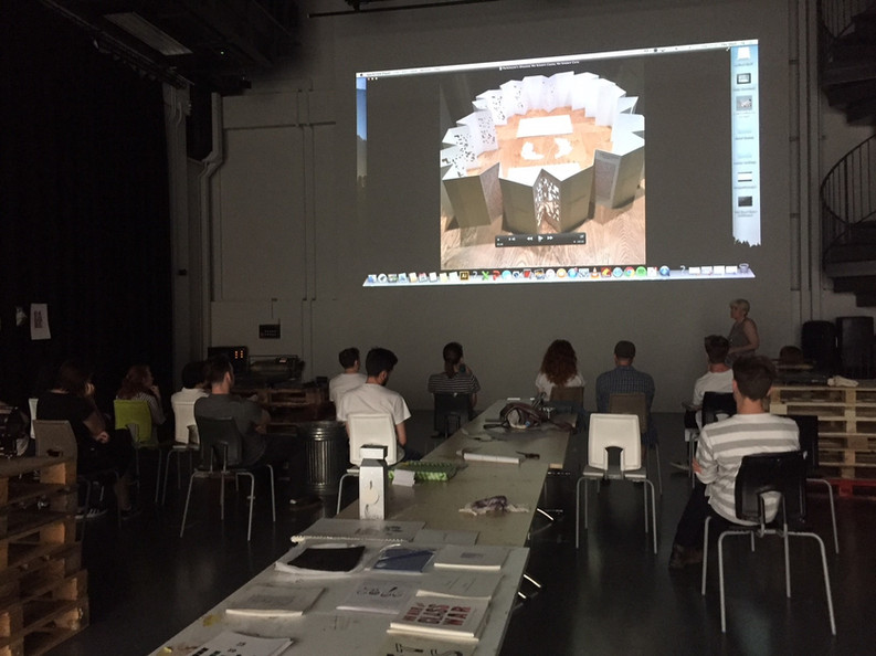 Each student is also asked to bring with them to the event a print on a certain topic in an edition of 25. These prints are then bound together in book form for each participant to take home.